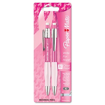 Support breast cancer research with this pink ribbon mechanical pencil. Paper Mate will donate ItemOverviews.20 from the sale of this pack to City of Hope for breast cancer research, treatment and education, up to 0,000. It features a specially designed soft grip for comfortable writing. Sleek hourglass barrel is stylish and easy to control. Refillable lead and eraser make it an economical alternative to wood pencils. Mechanism: Mechanical; Pencil Type: Mechanical; Lead Color(s): Black; Grip Type: Cushioned.Paper Mate 1751007 - Comfortmate Ultra Pink Mechanical Pencil, 0.7 mm-PAP1751007Item Brand