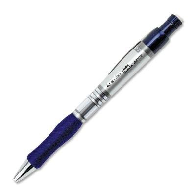 Quick Dock Pencil is preloaded with 12 pieces of lead inside an all-in-one cassette tube and an extra-long twist-up eraser. Refill lead and eraser cartridge by simply pulling out empty cassette and docking a new cassette refill in its place until it snaps. Design features a sleek, contoured barrel with silver accents, top-click lead advance and a comfortable latex-free grip. Lead and eraser are refillable exclusively with Pentel Quick Dock Refill Pack.