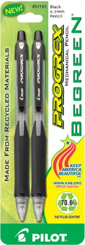 An earth-friendlier pencil, the Pilot ProGrex BeGreen Mechanical Pencil is made from 70.6% recycled content, and offers the same great quality you'd expect from Pilot. These retractable pencils are refillable with Pilot lead refills. Each pencil contains a 0.7mm HB lead for smooth writing and meets ISO 14001 and 14021 Standards. Pilot Pen is proud to be part of the movement - providing consumers with a wide selection of responsible choices that can be part of their everyday commitment to make our planet cleaner and healthier. Pilot BeGreen - Positive with the Planet!Pilot ProGrex BeGreen Mechanical Pencil, 0.7mm HB, 2-Pack (51191) Feature